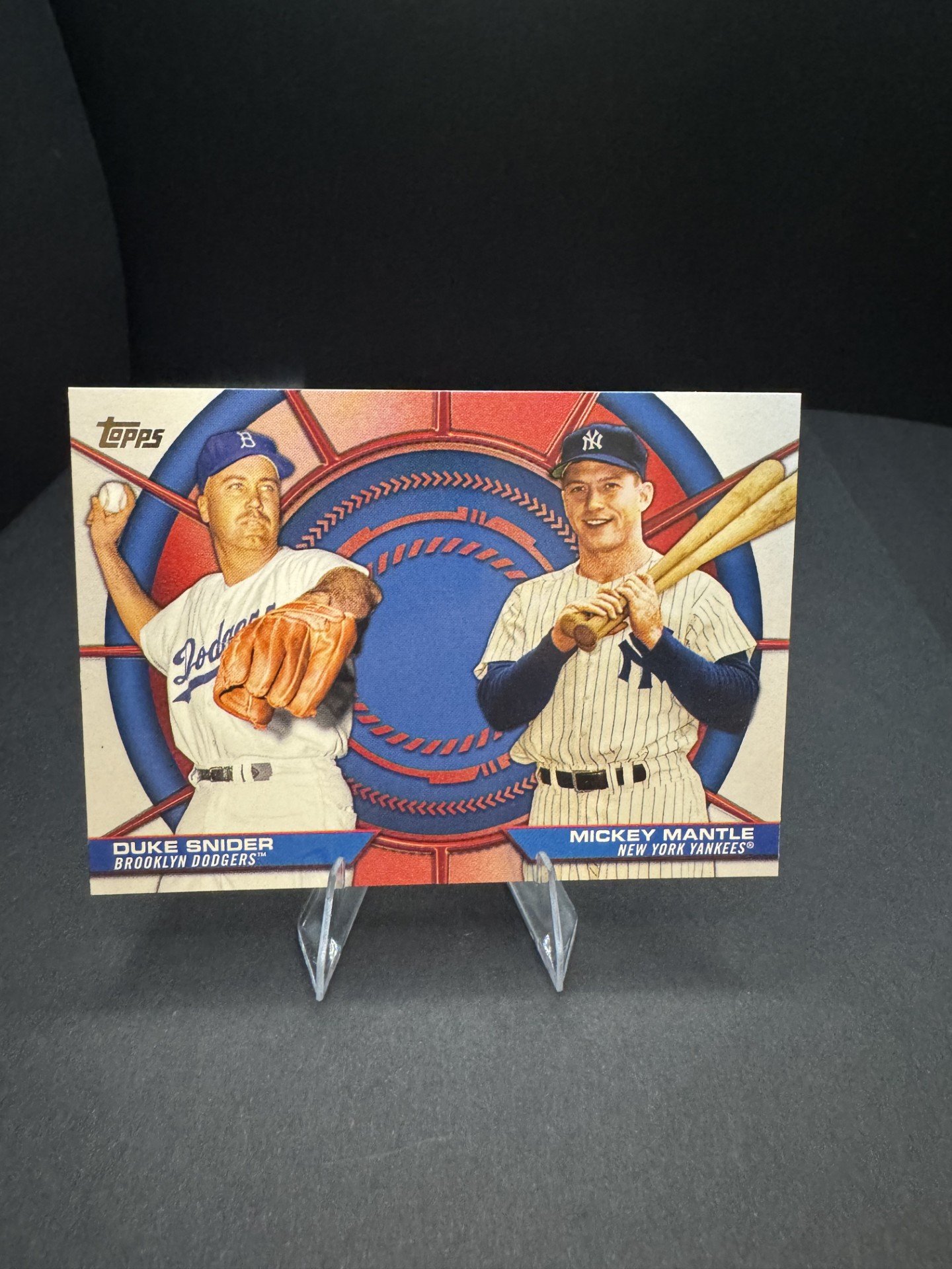 This vintage-style Topps dual player card highlights two of the most legendary figures in Major League Baseball history — Duke Snider of the Brooklyn Dodgers and Mickey Mantle of the New York Yankees. Capturing the rivalry and dominance of the 1950s, this card pays tribute to their unforgettable World Series matchups and elite production on baseball’s biggest stage.
