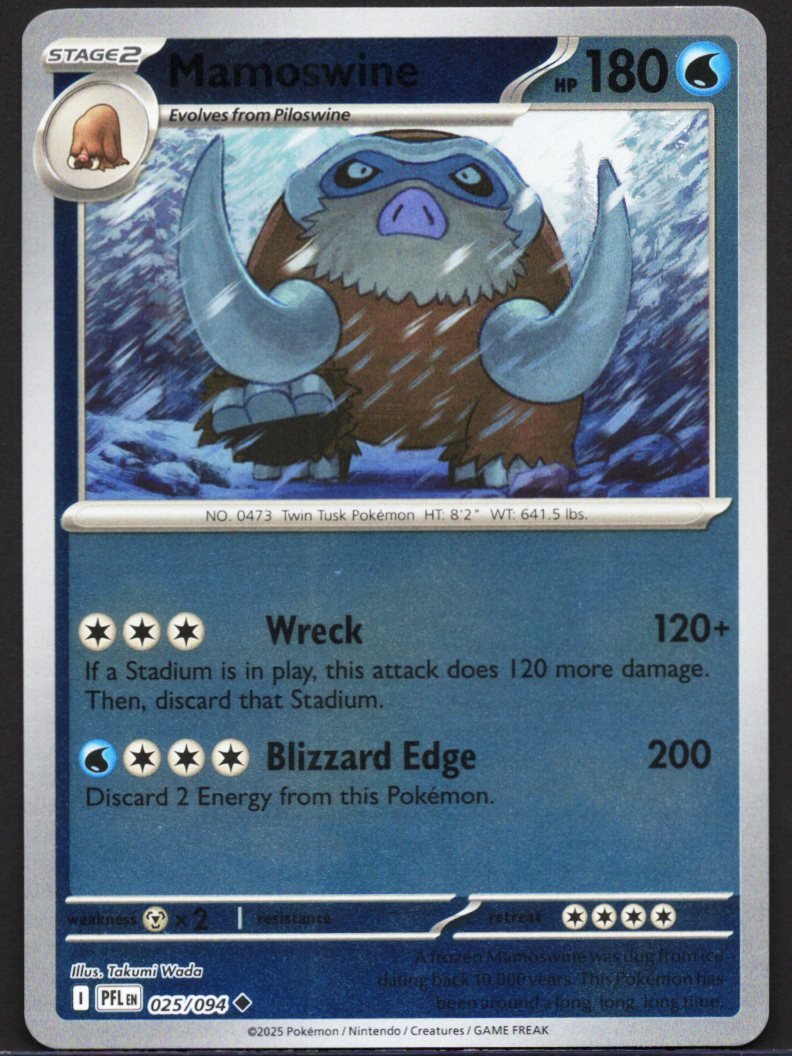 As a Grass-type Pokémon, it excels at high-mobility combat and tactical retreats. Its first move, Low Kick, delivers a reliable and quick physical strike to the opponent’s Active Pokémon. For a devastating finishing maneuver, it utilizes Jumping Shot, which deals massive direct damage; however, the exertion of this attack requires the player to shuffle Lokix and all cards attached to it back into their deck, allowing for a fresh strategic setup. The artwork by Taiga Kasai captures the character’s predatory grace, complemented by flavor text noting that when it decides to fight all out, it stands on its previously folded legs to enter Showdown Mode.