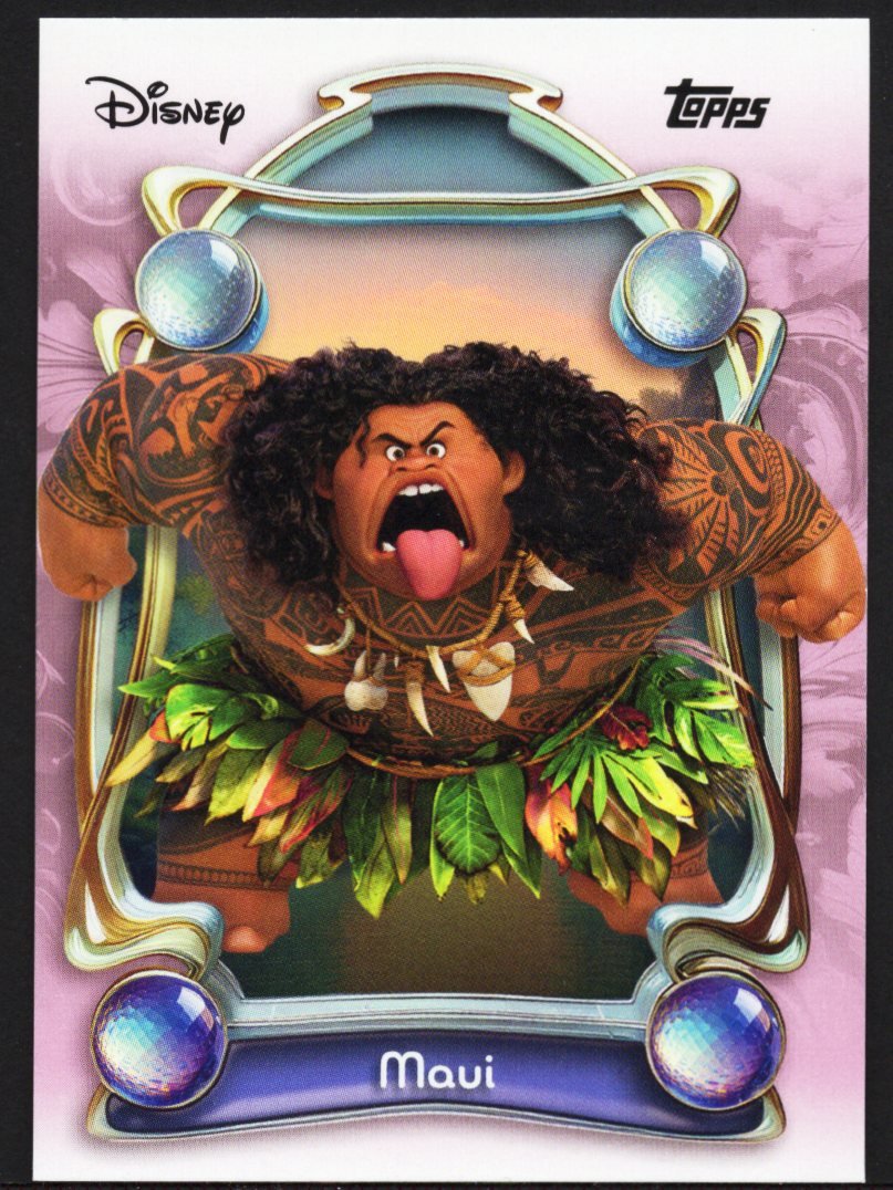 This original Topps Disney Wonder Maui card is a dynamic collectible for fans of the modern Disney era and dedicated character collectors. Part of the tiered base set, the card captures the mighty Maui in a fierce and energetic Haka pose, complete with his traditional tattoos and leaf skirt. The illustration vividly portrays his larger-than-life personality and strength as a shape-shifter and hero of men. The character is beautifully framed by the collection’s signature ornamental golden and pink border, set against a warm, sun-drenched forest background. Manufactured by Topps on high-quality card stock, this English-language card offers a premium feel and vibrant color reproduction. Whether you are a set builder working through the tiered checklist or a fan of the epic seafaring journey, this card is a fantastic addition to any collection.
