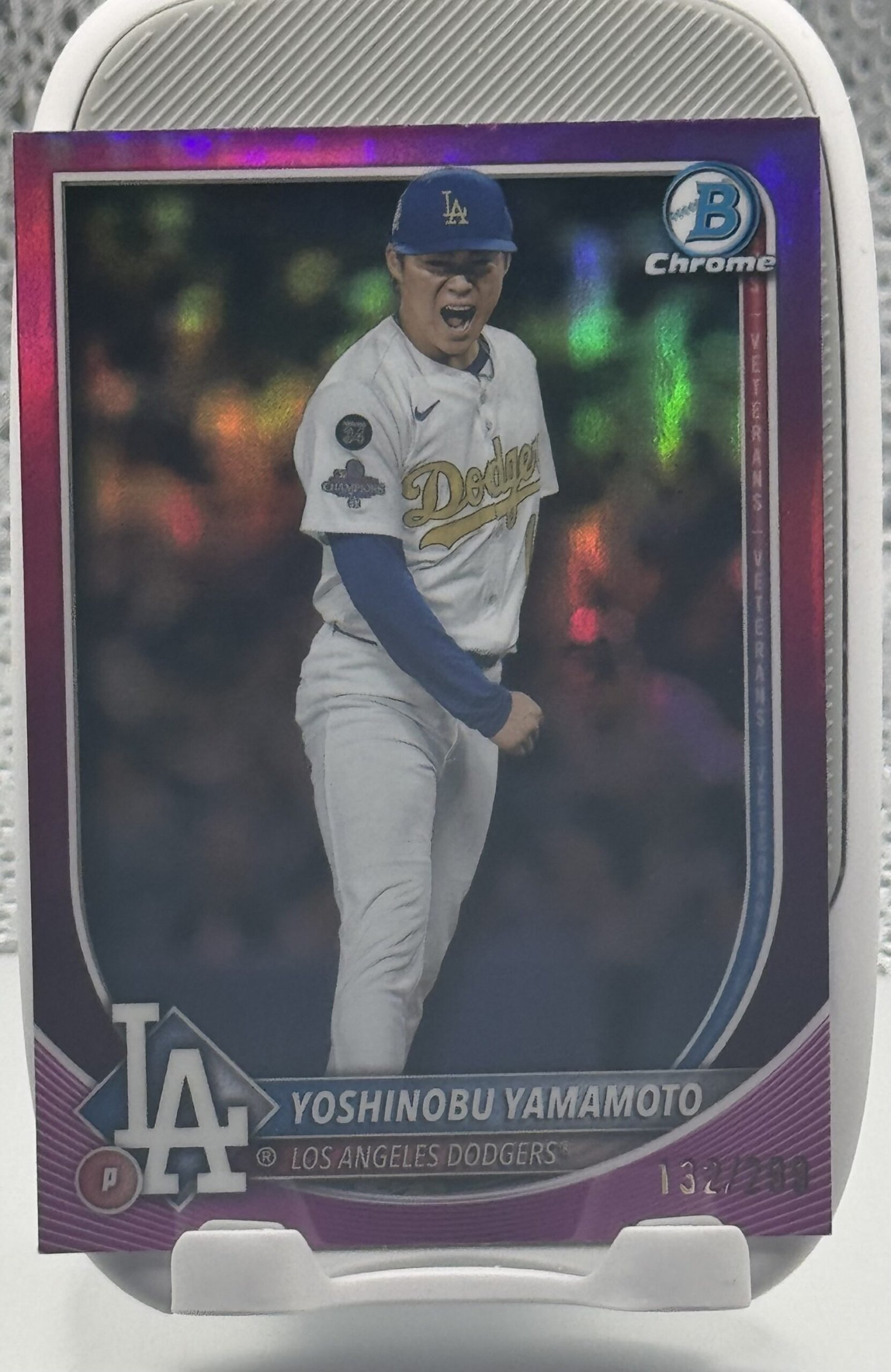 The vibrant Purple Refractor finish adds premium visual appeal, while the serial numbering (/199) makes this card a true limited-edition piece. A must-have for Dodgers fans, Yamamoto collectors, and serious Bowman Chrome enthusiasts.